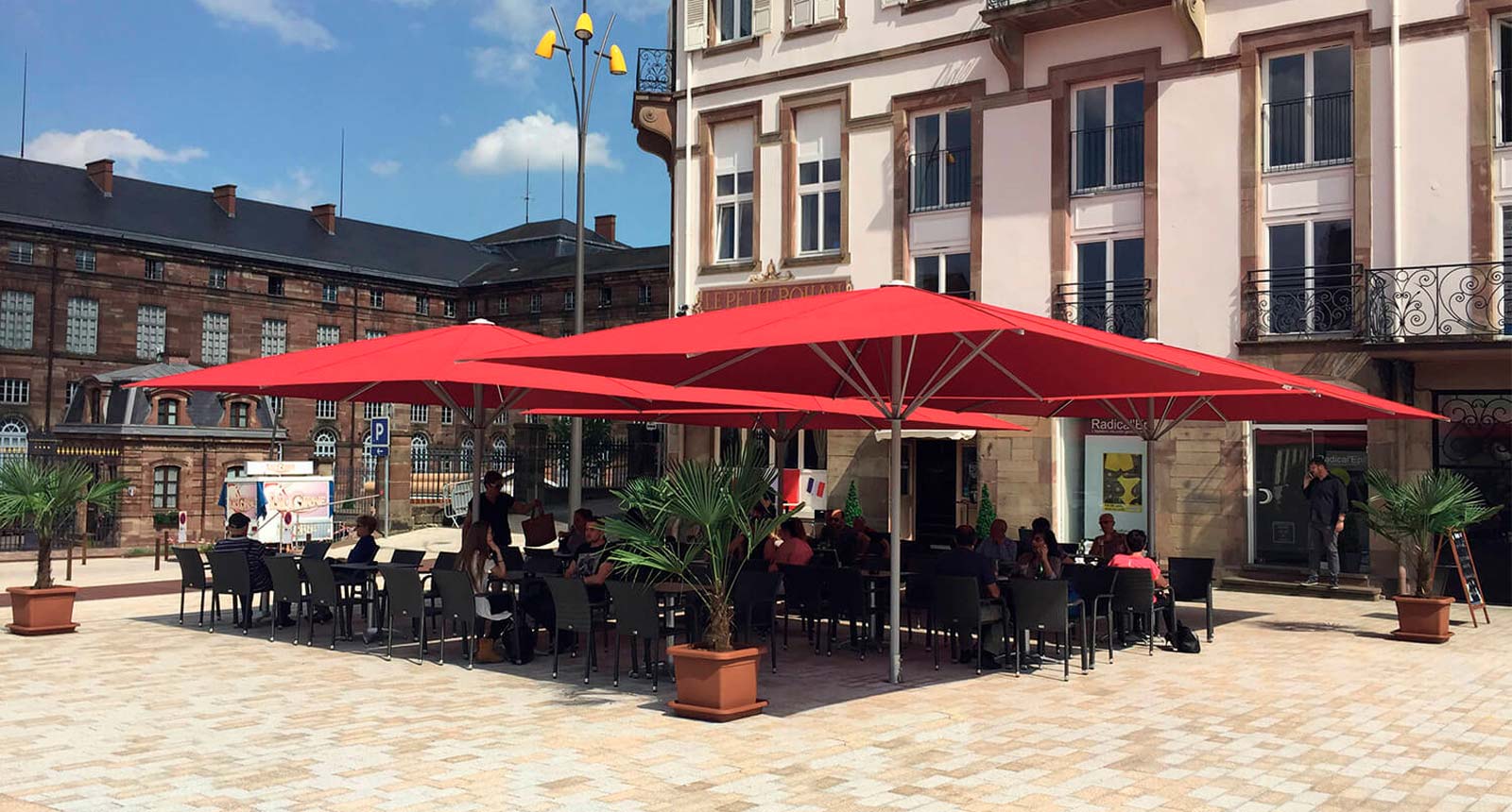 Nous avons une large gamme de parasols, de petite ou grande taille, pouvant couvrir jusqu'à 78m² de terrasse, en partenariat avec notre distributeur May.