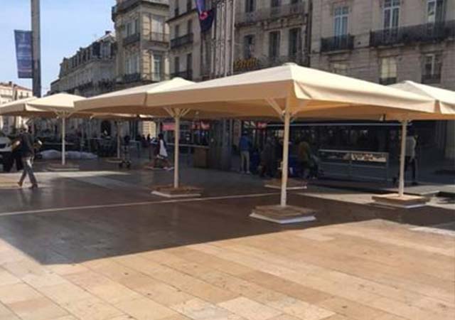 Nous avons une large gamme de parasols, de petite ou grande taille, pouvant couvrir jusqu'à 78m² de terrasse, en partenariat avec notre distributeur May.